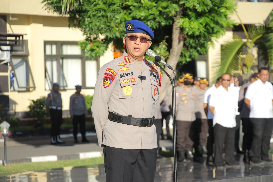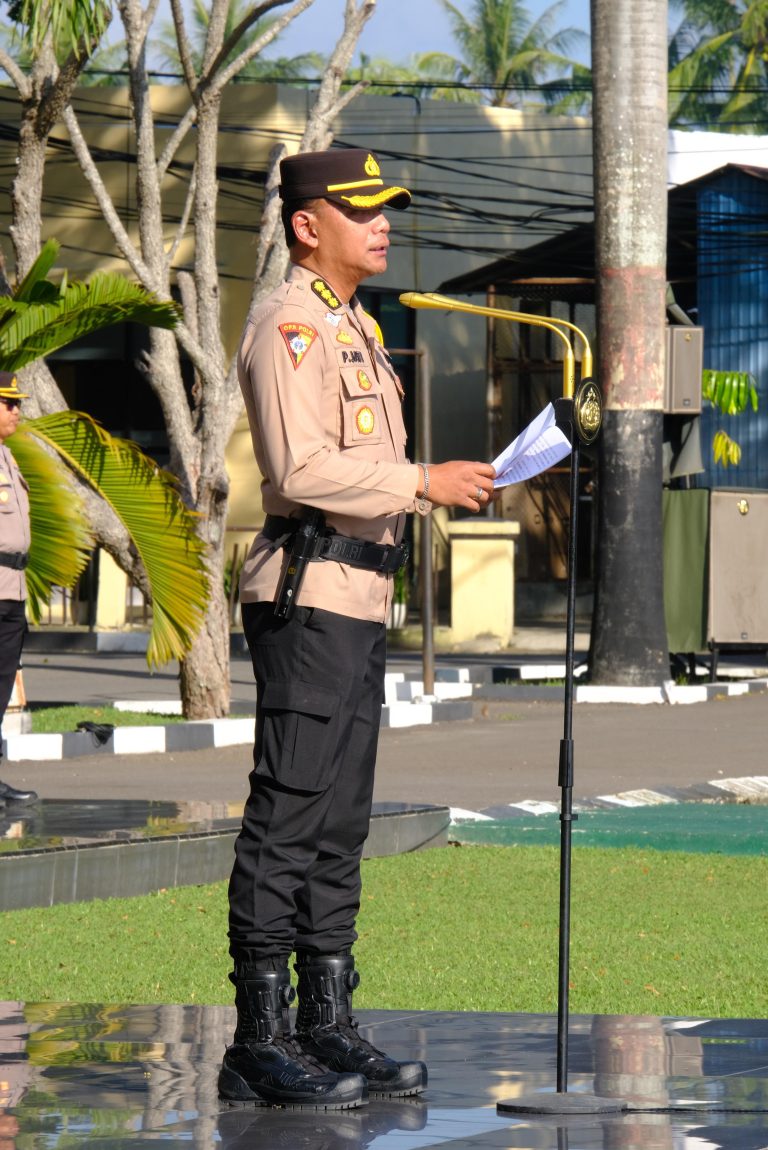 Karo Ops Polda Gorontalo Kombes Pol. Pramono Jati, S.I.K., M.T., menyampaikan amanatnya dalam Apel Gelar Pasukan Operasi Kepolisian Kewilayahan Keselamatan...