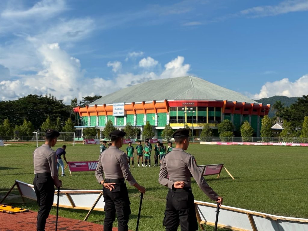 Tribratanews.gorontalo.polri.go.id – Dalam rangka mendukung kelancaran dan keamanan penyelenggaraan turnamen sepak bola Adhiyaksa Cup, Samapta Polda Gorontalo melakukan back up pengamanan di wilayah hukum Polres Gorontalo, Minggu (30/06/2024).