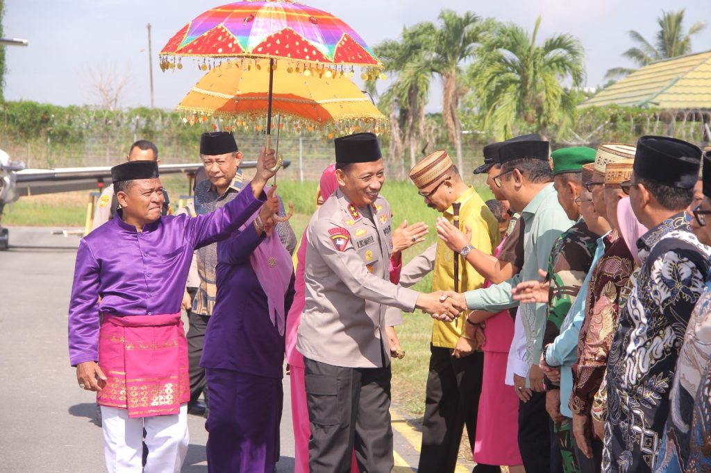 Tribratanews.gorontalo.polri.go.id – Gorontalo, 20 Maret 2025 – Pagi ini, Kamis, 20 Maret 2025, pukul 08.50 Wita, Provinsi Gorontalo menyambut kedatangan Kapolda Gorontalo yang baru, Irjen Pol. Drs. R. Eko Wahyu Prasetyo, SH, dengan penuh kehormatan dan suasana adat yang khas. Bersama sang istri, Ny. Wiraksi Eko keduanya tiba di Bandara Lama Djalaluddin yang disambut dengan upacara adat Mopotilolo yang merupakan simbol penerimaan dan kehormatan dari masyarakat Gorontalo.