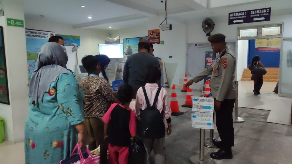 Tribratanews.gorontalo.polri.go.id– Pengamanan kedatangan kapal ferry di Pelabuhan Gorontalo diperketat oleh petugas gabungan dari TNI AL,Polri, dan petugas Pelabuhan, menyusul peningkatan jumlah penumpang menjelang akhir pekan panjang, Jumat (09/05/2025).