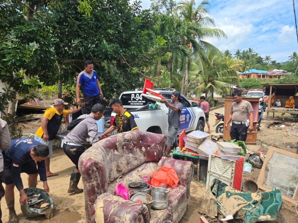 Menyadari pentingnya pemulihan pasca-banjir, Polres Pohuwato bergerak cepat memberikan bantuan kemanusiaan. Dengan peralatan sederhana, personel polisi bersama masyarakat membersihkan halaman, teras, hingga bagian dalam rumah dan fasilitas umum lainnya.
