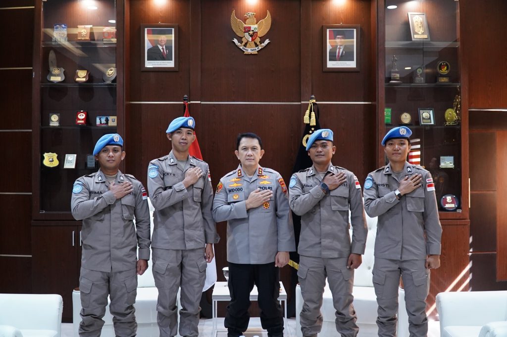 Gorontalo – Kapolda Gorontalo Irjen Pol. Drs. Widodo, S.H., M.H. menerima audiensi dari personel Polda Gorontalo yang terpilih dalam Pasukan Satuan Tugas Garuda Bhayangkara Formed Police Unit (FPU) 7 Multidimensional Integrated Stabilization Mission in the Central African Republic (Minusca) Tahun Anggaran 2025.