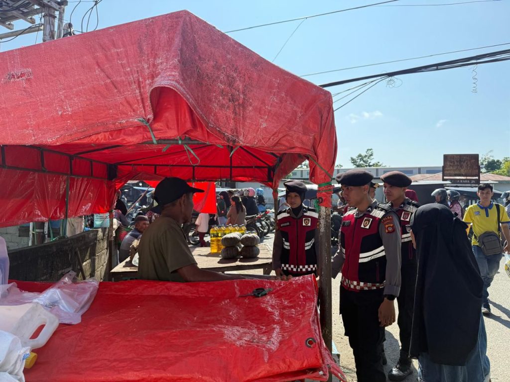 Personel Patroli yang terdiri dari Dit Samapta Polda Gorontalo, mengawasi dengan cermat area pasar di wilayah tersebut.