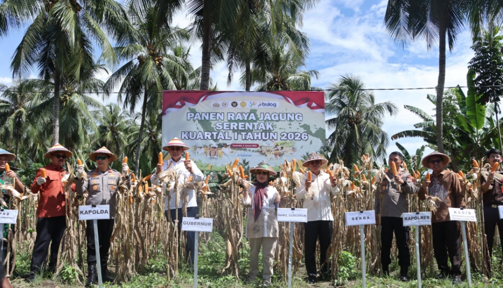 Tribratanews.gorontalo.polri.go.id-Kepala Kepolisian Daerah Kapolda Gorontalo Irjen Pol Drs. Widodo S.H.,M.H menghadiri kegiatan Panen Raya Jagung Serentak yang digelar di Kab. Bone Bolango sebagai bagian dari upaya mendukung dan memperkuat program swasembada pangan nasional. Kegiatan ini merupakan bentuk sinergi antara pemerintah, aparat keamanan, dan para petani dalam meningkatkan ketahanan pangan di daerah, Kamis 08/01/2026.