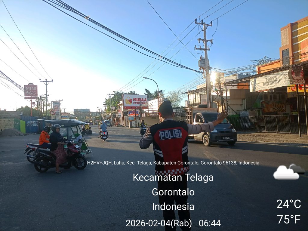 Guna menunjang kelancaran aktivitas masyarakat, Direktorat Samapta Polda Gorontalo melaksanakan pengaturan lalu lintas di sejumlah ruas jalan yang kerap mengalami peningkatan volume kendaraan. Kegiatan ini menjadi bagian dari upaya Polri dalam memberikan pelayanan langsung kepada masyarakat pengguna jalan. Rabu (04/02/2026).