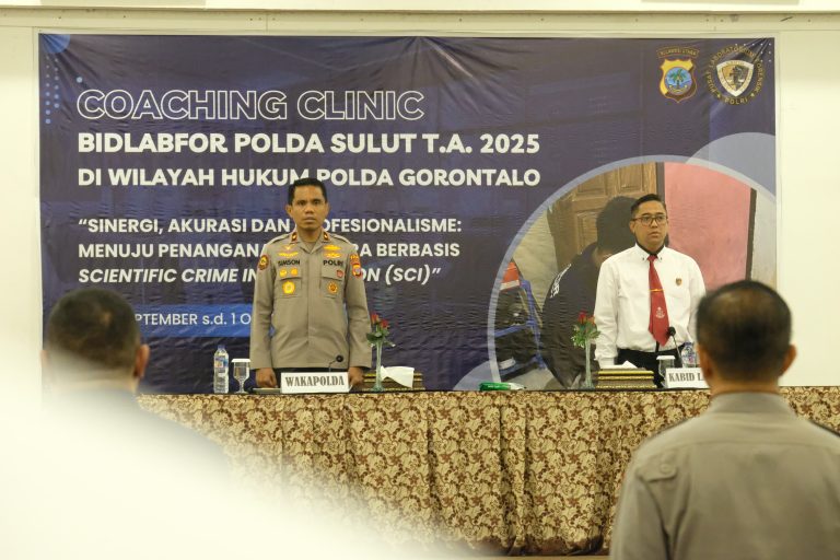 Tribratanews.gorontalo.polri.go.id – Wakapolda Gorontalo Brigjen Pol. Simson Zet Ringu, S.I.K., M.Si menghadiri sekaligus membuka kegiatan Coaching Clinic Bidlabfor Polda Sulawesi...