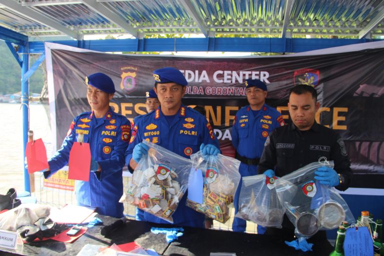 Tribratanews.gorontalo.polri.go.id - Aksi ilegal fishing menggunakan bom ikan di perairan Laut Kabupaten Gorontalo Utara (Gorut) berakhir dengan penangkapan tiga pelaku...