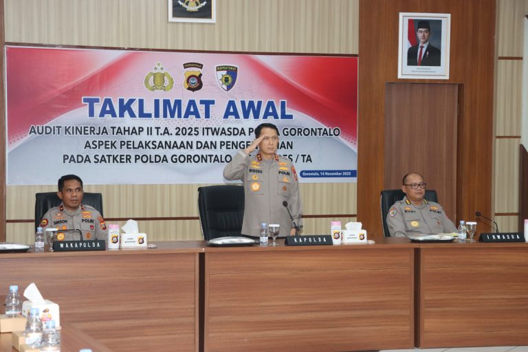 Kapolda Gorontalo Irjen Pol. Drs. Widodo, S.H., M.H. menghadiri sekaligus membuka pelaksanaan Taklimat Awal Audit Kinerja Tahap II Itwasda Polda...