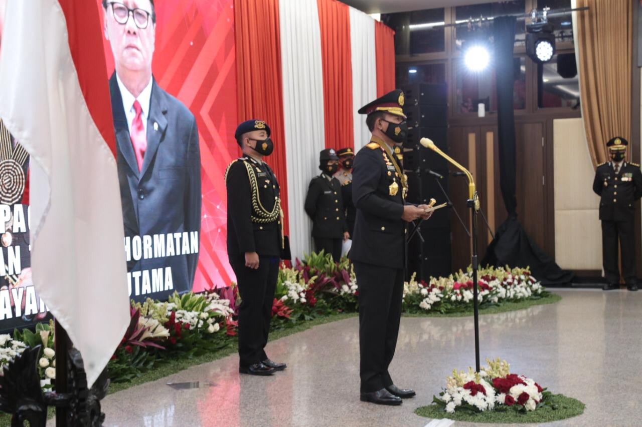 JAKARTA - Kapolri Jenderal Idham Azis memberikan Tanda Kehormatan Bintang Bhayangkara Utama kepada Menteri Pendayagunaan Aparatur Negara dan Reformasi Birokasi Tjahjo...