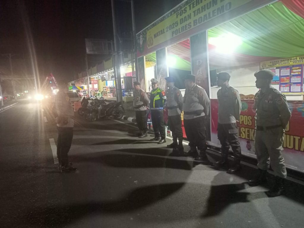 tribratanews.gorontalo.polri.go.id – Polres Boalemo memastikan pengamanan Natal dan Tahun Baru 2025 berjalan optimal melalui apel pengecekan personil Pos Pam Terpadu Tilamuta. Kegiatan ini dipimpin langsung oleh Kasat Pam Tilamuta pada Sabtu (20/12) pukul 20.00 WITA, menunjukkan komitmen Polri dalam menjaga keamanan dan ketertiban masyarakat (Kamtibmas) di wilayah Boalemo.