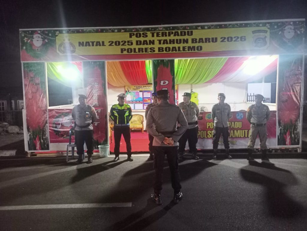tribratanews.gorontalo.polri.go.id – Polres Boalemo memastikan pengamanan Natal dan Tahun Baru 2025 berjalan optimal melalui apel pengecekan personil Pos Pam Terpadu Tilamuta. Kegiatan ini dipimpin langsung oleh Kasat Pam Tilamuta pada Sabtu (20/12) pukul 20.00 WITA, menunjukkan komitmen Polri dalam menjaga keamanan dan ketertiban masyarakat (Kamtibmas) di wilayah Boalemo.