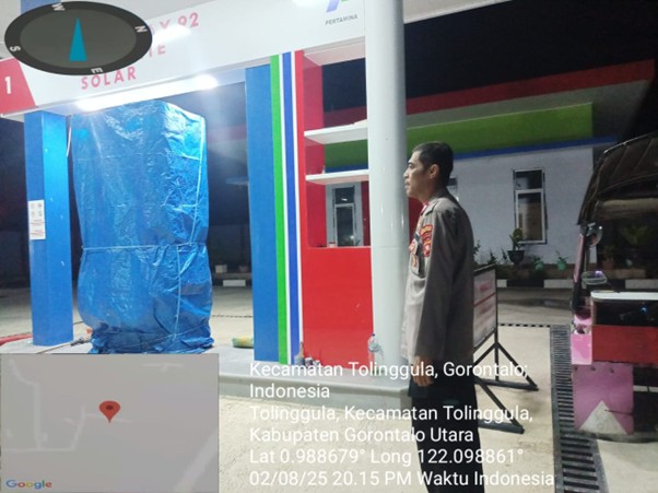 Tribratanews.gorontalo.polri.go.id – Gorontalo Utara, Pengamanan di SPBU Tolinggula, Kabupaten Gorontalo Utara, pada Sabtu malam tanggal 2 Agustus 2025 pukul 20.15...