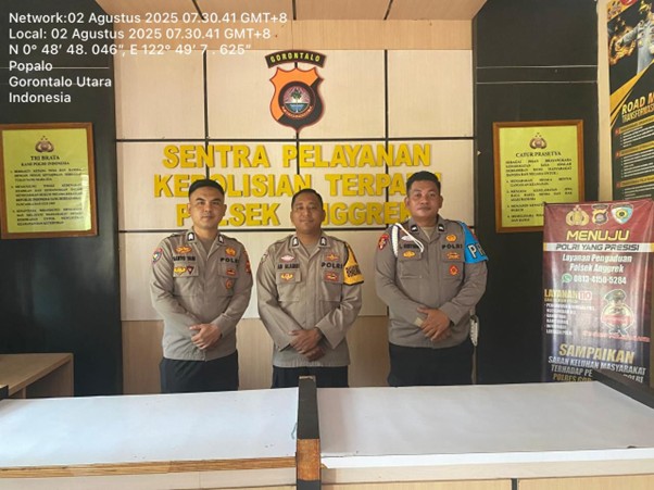 Tribratanews.gorontalo.polri.go.id – Gorontalo Utara, Dalam rangka menjaga keamanan dan kewaspadaan terhadap potensi gangguan kamtibmas, personel Polsek Anggrek melaksanakan tugas piket...
