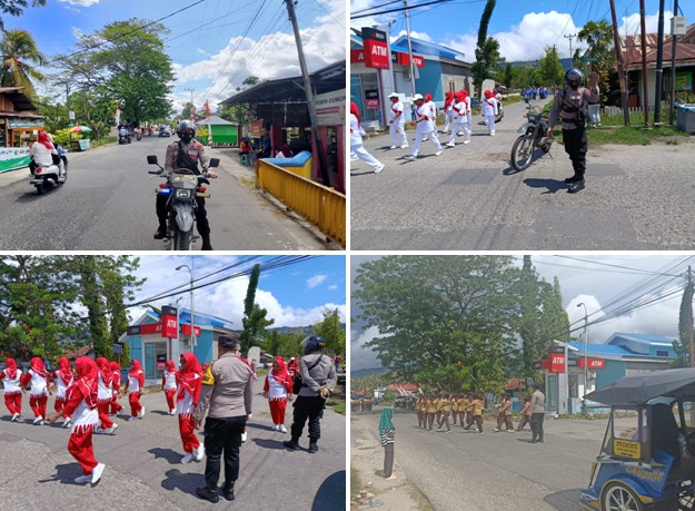 Meriahkan HUT RI Ke-80, Polsek Batudaa Lakukan PAM Jalur Kegiatan Lomba Gerak Jalan.
