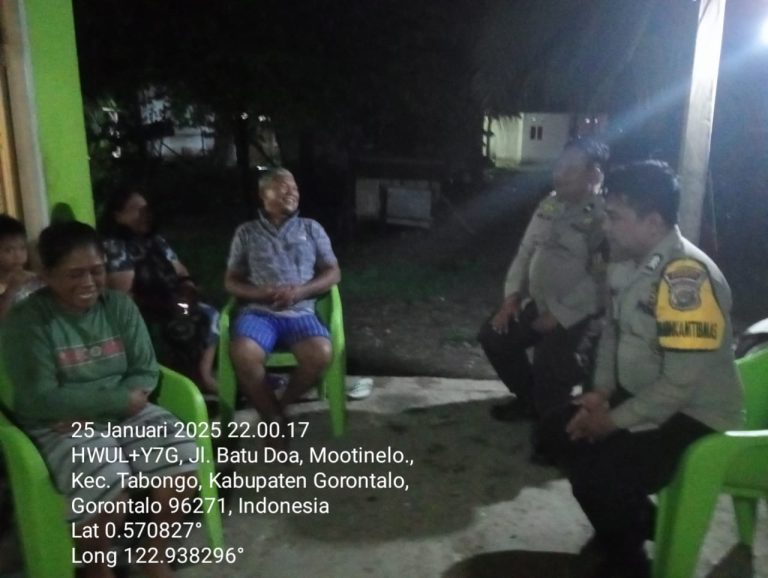 Polres Gorontalo – Personil Bhabinkamtibmas Polsek Tibawa Briptu Arya Rivai melakukan patroli sambang warga malam hari diwilayah Desa Binaan, Minggu...