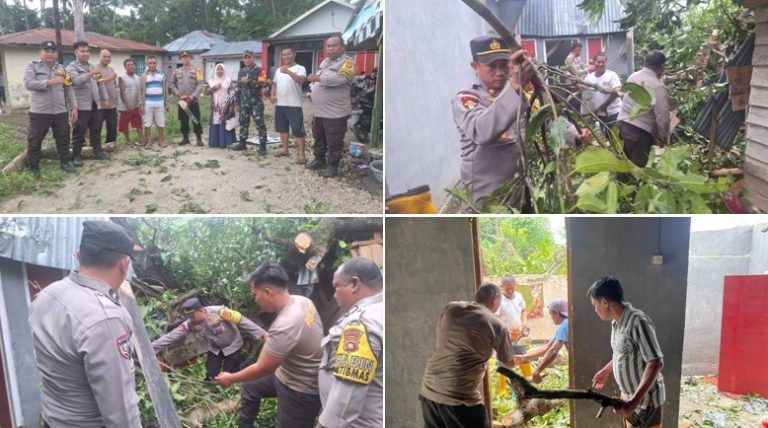 Polres Gorontalo – Personil Polsek Telaga Biru yang dipimpin oleh Kapolsek Iptu Fitri Sarino, Ali, SH, MH melakukan evakuasi pohon tumbang...