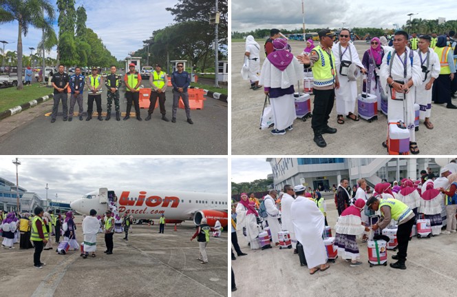 Polres Gorontalo – Kepolisian Sektor Kawasan Bandara Udara Djalaludin Gorontalo bersama Anggota dan Tim Avsec bandara melakukan pengamanan keberangkatan calon...