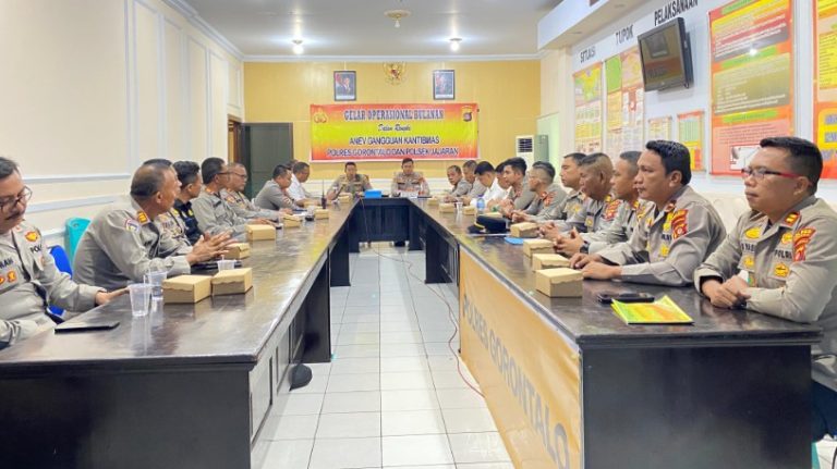 Polres Gorontalo – Kepala Kepolisian Resor Gorontalo AKBP Ki Ide Bagus Tri, SIK, memimpin kegiatan Gelar Operasional (GO) bulanan dalam...
