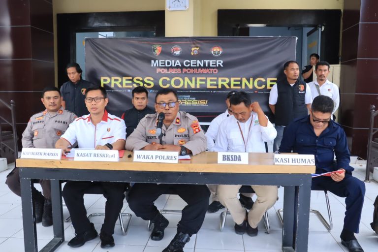 Tribratanews.gorontalo.polri.go.id – Polres Pohuwato menggelar press conference terkait hasil Operasi Penertiban Pertambangan Emas Tanpa Izin (PETI) dan penyalahgunaan Bahan Bakar...